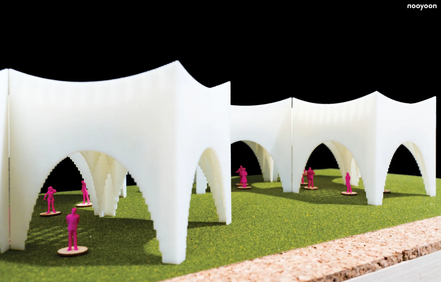 Pavilions are formed into clusters named ‘Constellation.’ The cluster can grow and disperse by reproduction of pavilions. There are two way of reproduction; 4-unit aggregation and 3-unit aggregation. The porosity in the clusters creates various spatial qualities; shaded space and enclosed space. A pavilion also creates unique lighting effects because of the varying depths of the roof. According to the spatial quality, diverse events can be set up at the pavilion cluster.